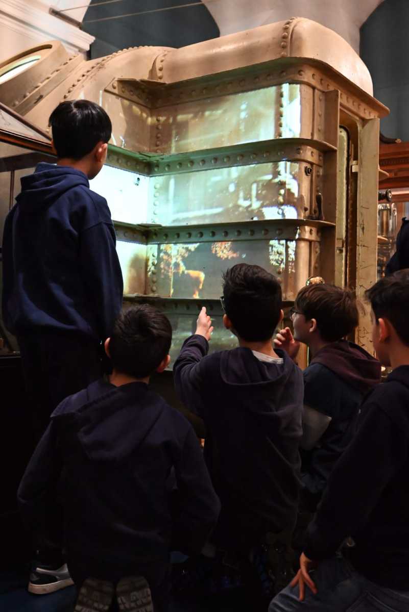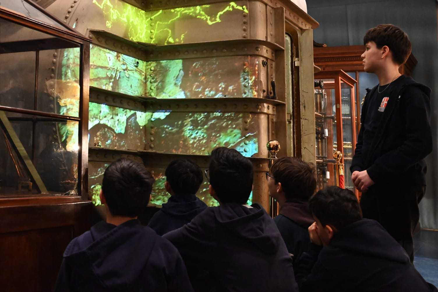L’antica lavagna di ardesia del laboratorio di Alessandro Volta diventa un portale interattivo. Un Avatar del Genio accoglie i partecipanti, sfidandoli a risolvere quesiti complessi. La pietra si anima con segnali Morse, schemi luminosi e proiezioni delle sue invenzioni, creando un dialogo tra materia e luce digitale.